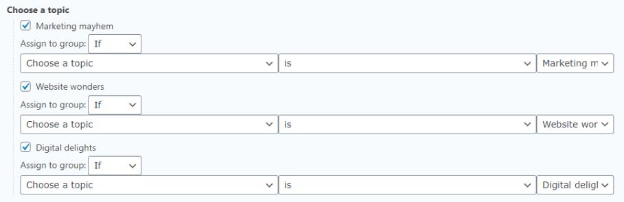- If you’ve created Groups in Mailchimp you can now assign your fields to the right selections. Choose “If” and select the corresponding fields.