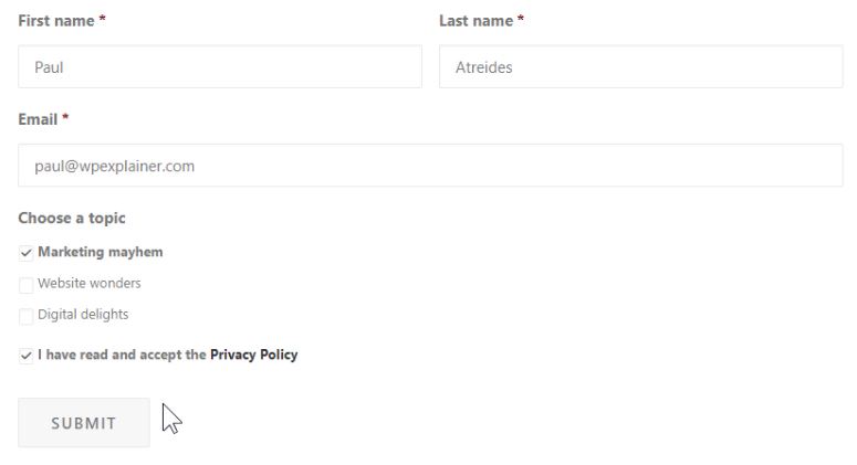 Here’s the GDPR checkbox code snippet: