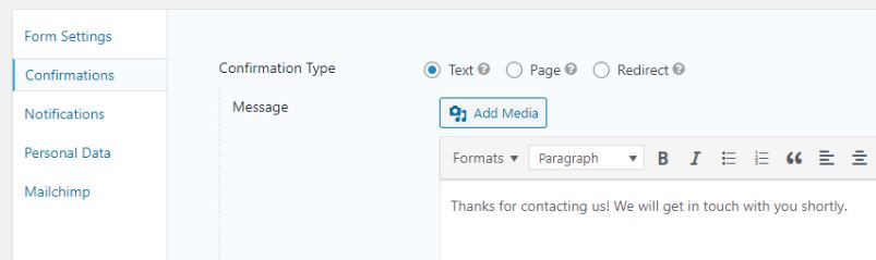 Lastly, to change the confirmation message, simply go to: