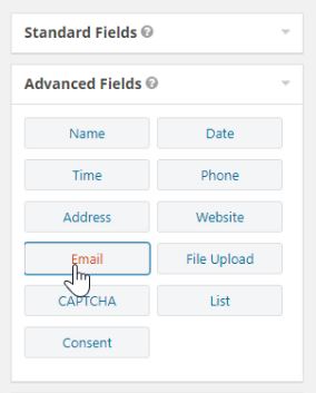 It’s important to use the specific email input field, which is found under “Advanced fields”.