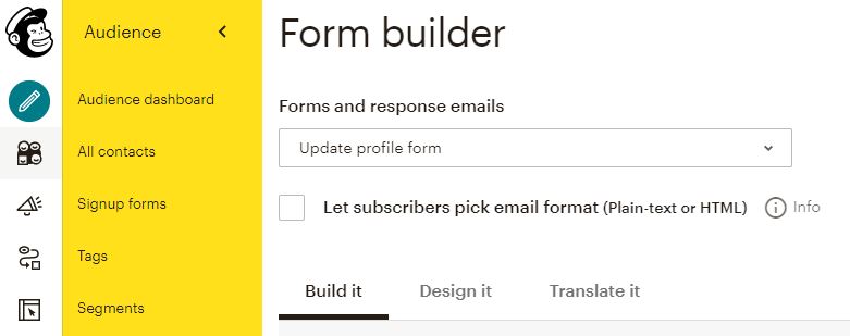 Signup forms → Embedded forms