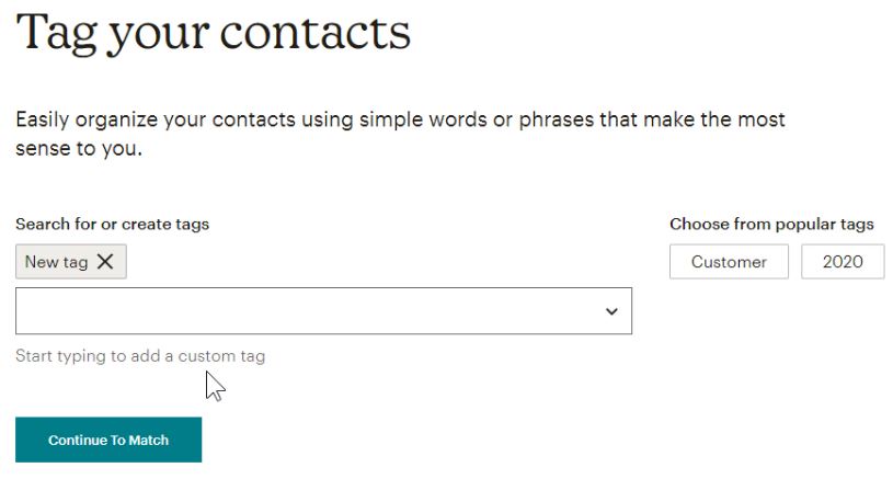 Let start by having a look at Mailchimp tags. This is a simple way of keeping your subscribers organized to any way you see fit, without them knowing about it. You could for example add a tag to a new list you’re importing, to remember where they came from.